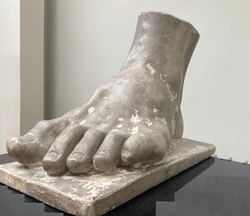 KABK, Royal Academy of Art The Hague housed a Gipsmuseum (museum of plaster replicas, 1920 to 1960 part of KABK) to learn to make art after nature. After damage by WWII and a beeldenstorm – iconoclasm – to break with former traditions by Joop Beljon (my former tutor) now only relics of the plaster replicas are left. As a student I found one of these relics and made the drawing De voet (the first, student KABK 1980; in private collection). In 2022 I revisited the KABK and re-connected with the original replica of the Foot. Collections are now in RMO, Maastricht University. Allard Pierson Museum, visit with Rene van Beek, curator Allard Pierson, 2022. Visit exhibition Gipsen, tussen kunst en kopie, Bonnefanten Museum with Marjan Melkert, curator plaster Gypsotheek collection Bonnefanten Museum, 2024.