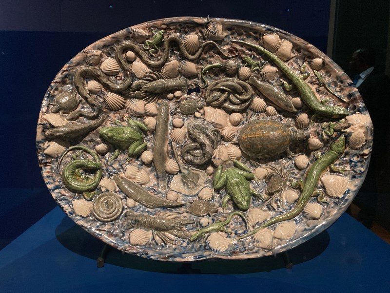Inspired by 16th century nature-explorer and ceramist Bernard Palissy (1510-1590). Trying to capture the essence of life in a marshy pool. Palissy is known for his contributions to the natural sciences, and is famous for discovering principles of geology, hydrology and fossil formation. (Image) On loan at Rijksmuseum, visit with Jan de Hond, conservator exhibition Onderkruipsels, 2022. Introduction, followed by visit to depot with Aurélie Gerbier, conservator Musée national de la Renaissance, Ecouen, France, 2023.