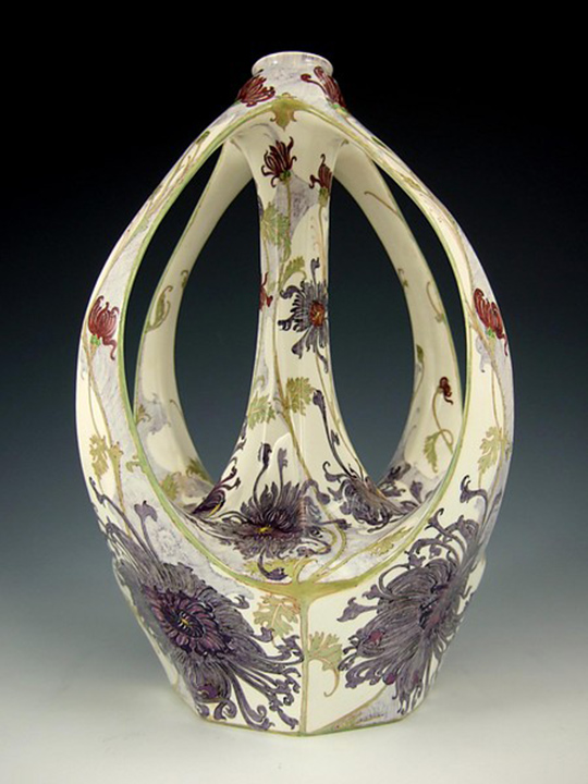 It seems a parallel with the current time when more than 100 years ago artists went in search of ‘new art for a new and better society’ with nature as a source of inspiration and revaluation of craftsmanship (Art Nouveau). In the Boekhorststraat in The Hague (later Buitenom), the N.V. ‘s-Gravenhaagsche Kunstaardewerkfabriek, Plateelbakkerij Rozenburg (1883-1916) started producing eggshell porcelain (1899 -1914). This porcelain was painted with motifs derived from plants, flowers or animals and inspired by the East. It was first presented at the World Exhibition in Paris in 1900.