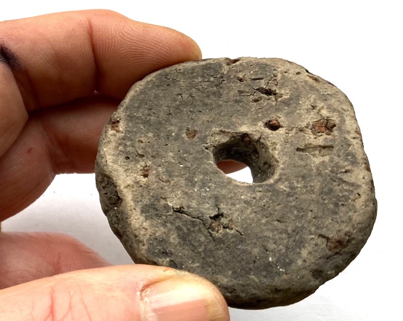 Collection of The Hague Dunes Iron Age Porcelain & – Celadon, 2021. Part of Re-cast as repository | Residual intimacy. Reinventing historic porcelain and Bone China recepis by recycling Iron Age pottery shards. Made during 2nd artist-in-residency at EKWC – the European Ceramics Work Centre in 2021. Open Studio at Test Case XXIV, EKWC 2021, introducing The Hague Dunes Iron Age Porcelain & – Celadon.308-S75: a sample of prehistoric re-use of broken pottery for an Iron Age tool, a spinning whorl (in Dutch spintol, spinschijf) on loan from The Hague Archeology, 3-d scanned to make molds.Iron Age pottery shards.Source location: The Hague dunes. Source materials: archeological Iron Age pottery shards, found in a blow out (in Dutch stuifkuil), The Hague dunes. In Situ: x – y coordinates; Ex Situ: z- coordinates: the shards drop vertically when the wind blows away the sands.