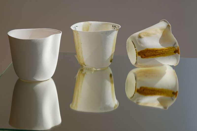 Breath, 2024. Biomorphic eggshell porcelain, artist-in-residency at Kouraku Kiln in Arita, Japan.leaves of Oo Ichou, as the locals lovingly call the 1000-year-old Ginkgo tree in their midst, Arita Japan, 2024When inside and outside seem to touch, 2024. Biodigital Eggshell Porcelain & Ginkgo ash glazing, artist-in-residency atKouraku Kiln in Arita, Japan. Biodigital Eggshell Porcelain & Ginkgo fruits & nuts & ash & Amakuza fine stones glazing, wood fired at Hasami Noborigma, artist-in-residency atKouraku Kiln in Arita, Japan.testingbiomorphicfluidity of breath & of raw Ginkgo ash glazing – single fired2024testing organic glazing with mosses, weeds, Ginkgo ashes, 2024translucent porcelain Cup with Soul with a rim of North Sea Mammoth Fossils Celadon glazing, EKWC 2020