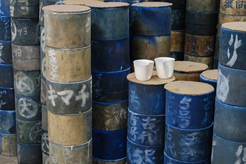 with special thanks to Sosuke Fukaumi (13th generation) for engaging in the experiment to put an unfired Cup with Soul in the blue Gosu kiln (that is fired once every 3 months) to soak up the accumulated gosu.