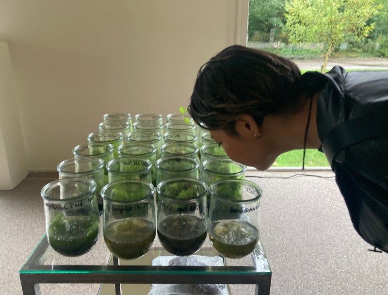 Deze tentoonstelling met levend veen, glas en spiegels biedt een doorkijkje naar de ongeziene levende bodem onder onze voeten. Tijdens de hete zomer in 2022 ontstaat een spontaan collectief van regenwaterverzamelaars in Amsterdamse achtertuinen om de collectie levend Sphagnum in de tentoonstellingsruimte met regenwater te voeden.